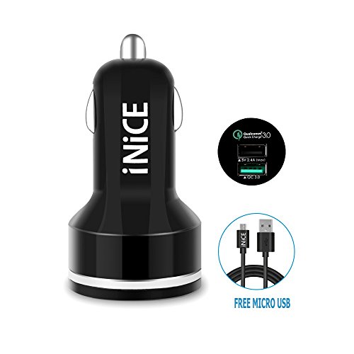 -. Title : iNiCE™ Quick Charge 3.0 Car Charger [QC 3.0] 2 Ports 30W USB Car Charger Adapter with 3ft Micro USB Cable Fast Charger for iPhone iPad Samsung Galaxy and More-Black