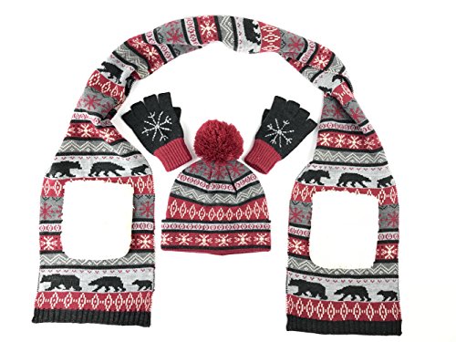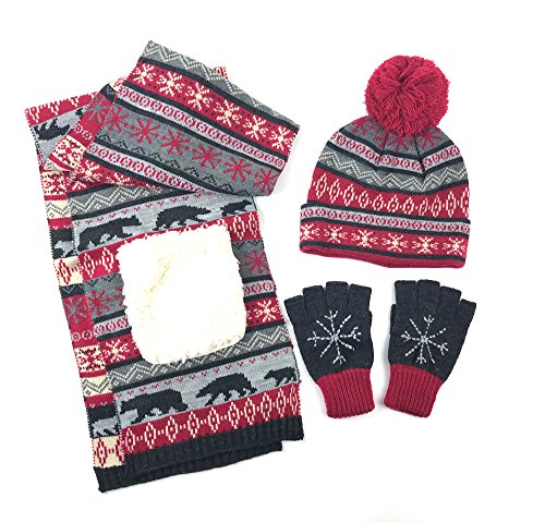 Bruceriver Women Girls Christmas themed scarf beanie hat glove 3 piece gift set