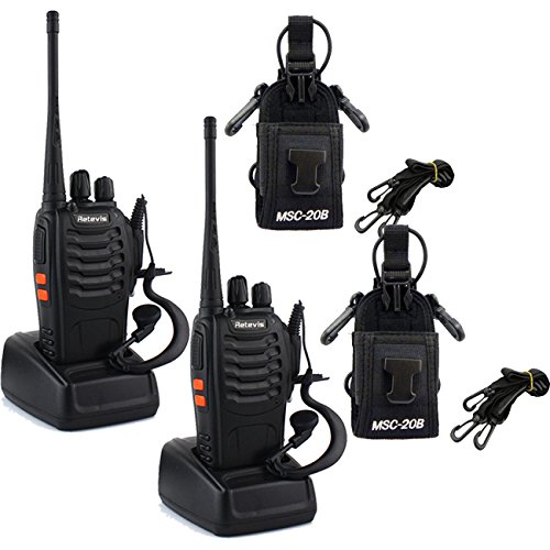 -. Binding : Electronics -. Brand : Retevis -. Color : Black -. EAN : 0631976555852 -. Feature : 16 memory channel,easy to use: each work group can have their own channel to minimize disruptions in other departments / Built-in Led torch make things easier when in dark environment / VOX function for true hands-free communication; and belt clip make them easy to carry / 1500mAh Li-ion battery,good battery life; Low Voltage Alert; Intelligent Charging / We provide 1 year warranty and 30 days no reason to return; No matter any reason, within 30 days you can apply for a return -. Label : Retevis -. Manufacturer : Retevis -. Model : Retevis H-777 -. PackageQuantity : 1 -. ProductGroup : Car Audio or Theater -. ProductTypeName : TWO_WAY_RADIO -. Publisher : Retevis -. Studio : Retevis -. Title : Retevis H-777 Walkie Talkie UHF 400-470MHz 3W 16CH Single Band With Original Earpiece 2 Way Radio Ham Radio (2 Pack) and Multi-Function Radio Case Holder (2 Pack) -. UPC : 631976555852