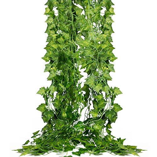 XGpie 85 Ft 12 Strands Ivy Artificial Garland, Fake Hanging Vine Plant Leaves Garland for Home Garden Wedding Decor