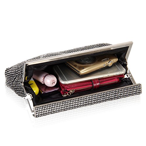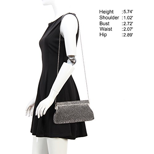 -. Brand : Hynes Victory -. Color : silver -. Department : womens -. Feature : Material: Full Crystal Rhinestone. / Clasp flap closure / Approx. Dimensions: 10.2*1.6*5.3 inches (L*W*H) / Great for evenings, formal events, and weddings / Memo: Please find the details of the size dimension. And pay attention to the color shade because of the different computer screen. -. ProductGroup : Shoes -. ProductTypeName : HANDBAG -. Size : Medium -. Title : Hynes Victory Full Crystal Rhinestone Evening Handbags
