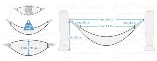 - Feature : Overall Length 13'1" x Width 7'6". / Dimensions of the bed itself is 6'7" in length and 7'6" in width / Maximum Carrying Capacity: 880 lbs / 80% Cotton, 20% Nylon. Thick cords for heavy duty use and maximum comfort / Note: Colors may vary on the Multi-color Hammocks