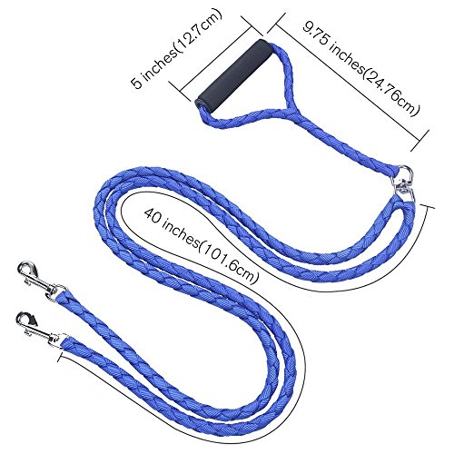 1.we have 6 colors for you choose, Red Black braided,Red Yellow braided,Blue Black braided,Black,Red,Blue,the color is bright and looks fashion.when you use our two-dog leash,that is so easy to walk two dogs together and have one hand free,that is comfortable. 2.Some person still use one simple leash or two different leashes to led pets when they go out walking,that is not safe and not easy to look after two dogs,if you use our leash,everything is easy. 3.Sometimes two dogs will run different way and make the leash twist together,Our leash use upgraded swiveling coupling piece allows the dogs to move with freedom without twisting up the two lead extensions. 4.Our leash used the strongest nylon/polyester material,braided,you can use years to come,it will not break,the handle is soft and durable,comfortable and easy control the dogs. 5.Money back guarantee,do not worry if you purchase our products and find the products not as expected,we can refund all the money to you.in fact we make sure your satisfiction for this products really very nice! Our products are backed by a Lifetime Warranty against defects in materials and workmanship. We develop all of our products to look great and last! We also believe in giving back.Nothing But The Best For Your Best Friends! 0