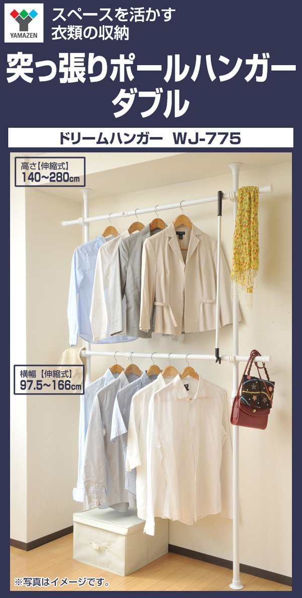 ● Assembly time ● Assembly time: about 20-30 minutes ● Easy installation with one-touch fixing device ● Stability prevention with spring compression type ● Extensible / retractable length 140-280 cm ● Hook can be easily adjusted position ● Shirt storage standard: 80