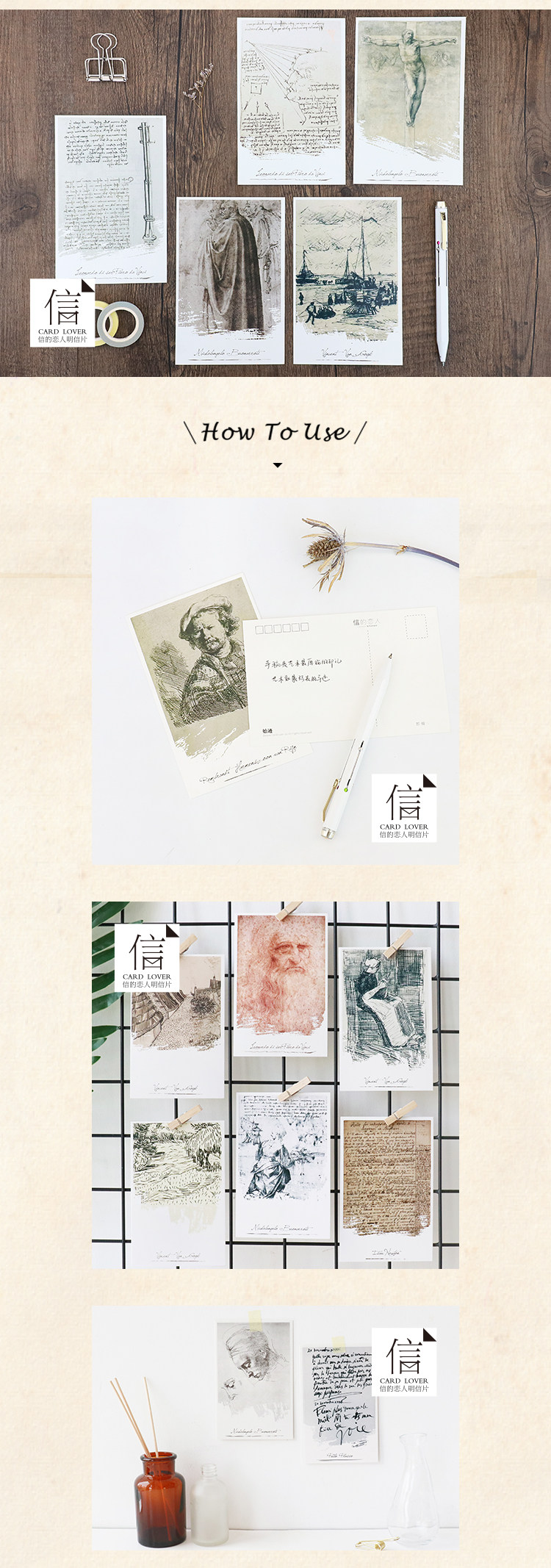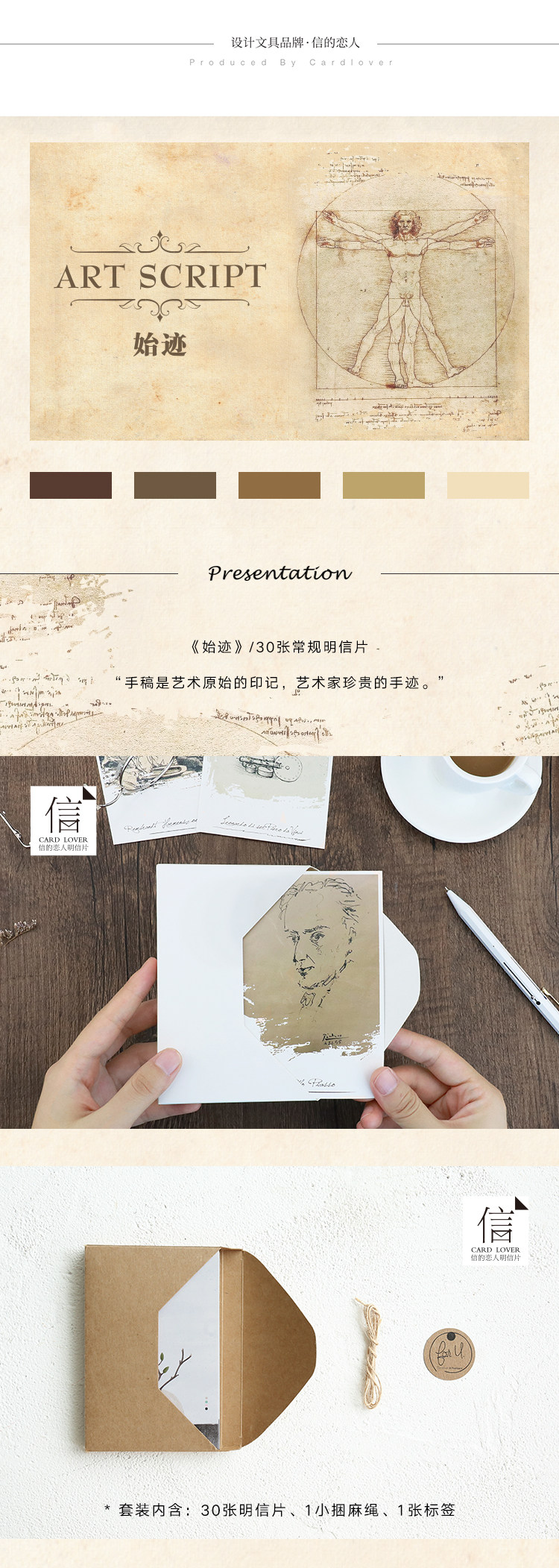 创意复古手绘素描人物明信片《始迹》文艺贺卡卡片30张