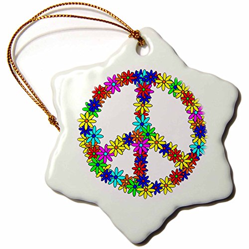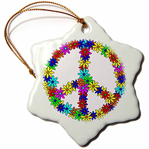 3dRose Peace Sign Flower Power Design Snowflake Porcelain Ornament, 3-Inch