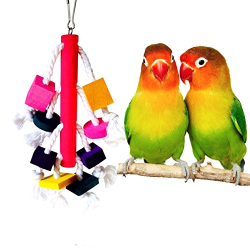 -. Title : Zeroyoyo Multi-colored Pet Parrot Macaw Birds Conure Swing Scratcher Hanging Wood Bites Chew Toy 1pc