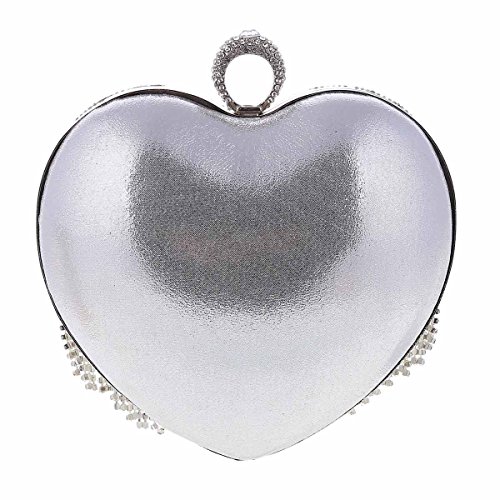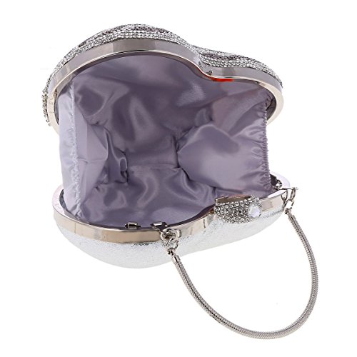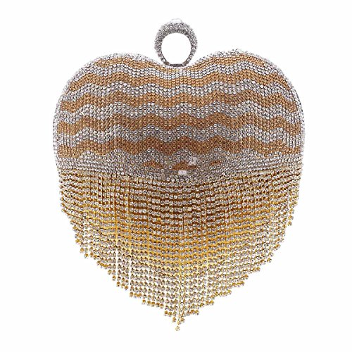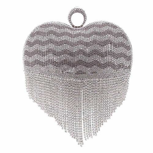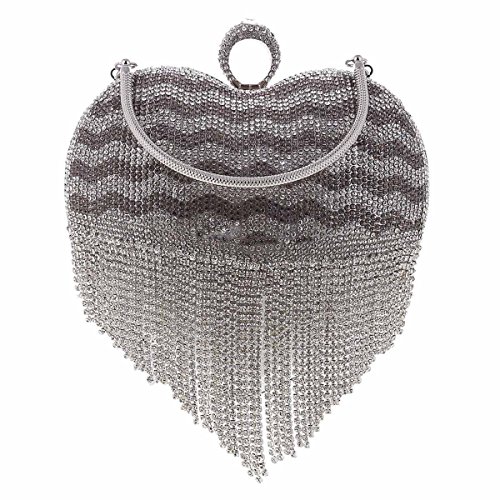 Product Description This graceful evening style clutch is frosted with glistening rhinestones that will make you glow during your special occasion. Special lovely heart shaped design with tassel rhinestones detail makes it more special.Top handle design,you can hold it in your hand.O-Ring clasp top,safty for your things.Inside can easily fit a compact mirror, lip gloss, and other small things.Conveniently, you can spend the night hands free with the detachable chain that is included.Measurement is app 16x8x17cm(6.29x3.14x6.69inch).The long chain size:118cm (46.45inch) 0