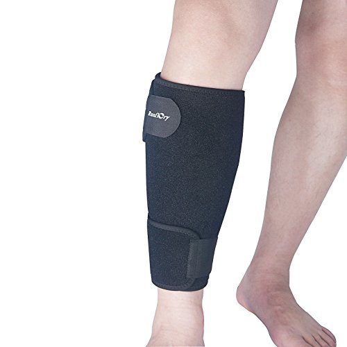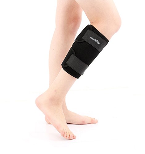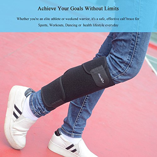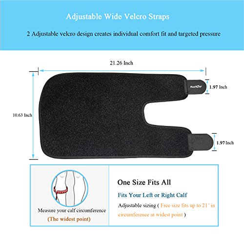 -. Feature : √ Breathable Neoprene: Durable high-elastic and moisture wicking Latex-free neoprene-blend materials for strong compression calf support, muscles warms and comfort tissue supports, ideal for active users, is designed to accelerate recovery time and wick away sweat to keep you cool throughout your exercise in all circumstances / √ Calf Injury Support: This calf shin support brace is perfect for aiding in recovery from calf strain injuries, sprains or calf muscle pain caused by shin splints, it provides soothing compression relief which increases bloodflow and reduces recovery time / √ Premium Quality: Ergonomic design allows easy wearing, neoprene-blend with special notches for breathability, lycra binding promises long lasting wear, long elastic wide strap creates best compression and special moisture wicking fabric keeps you dry and comfortable even during the toughest runs and workouts / √ Adjustable Velcro System: Dual high-strength straps with fully adjustable velcro closure for a ultimate comfort, to provide targeted compression support over pressure level & location, adjust tightness freely according to your needs or favorites to customize the support fit / √ One Size Fits Most: Free size up to 21" in length, fits your Left or Right leg, and will comfortably fit anyone from circumference 9.4 to 21." mid-calf (23 to 55 cm), ideal calf shin brace for both men and women