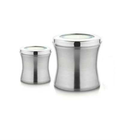 Qualways Stainless Steel Jumbo Size Belly Shaped Canisters, Canisters 4 Lb and 2 Lb (Medium)