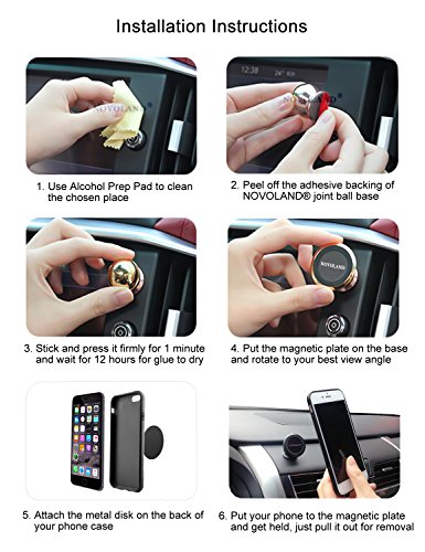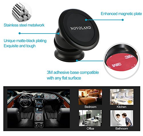 NOVOLAND® Universal Magnetic Cell Phone Dashboard Mount Holder for Car Dash, Strong Magnet, 360 degrees rotation, Ball design Compatibility: Smartphones of all sizes, including but not limited to