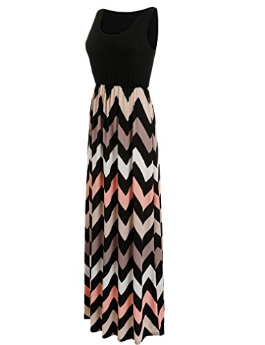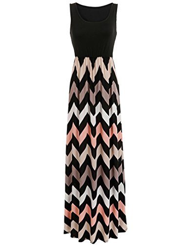 Feature:Striped,zig zag,chevron print,High waist,Sleeveless tank top, ruched empire waistline, sexy scoop neck chic style,full length