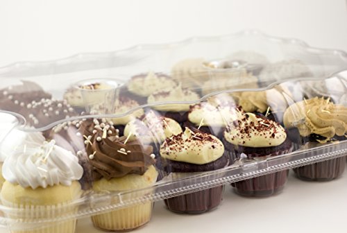 CONTAINER DIMENSIONS: 18 x 12.8 x 3.8 Inches, Bottom Compartment Diameter 2 Inches. Holds 24 Cupcakes.