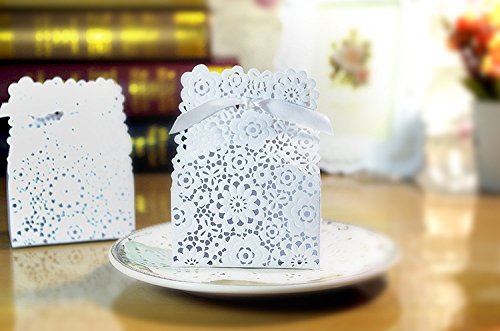 Sorive Red White Gold Laser Cut Wedding Candy Box 100pcs Wedding Gift Decoration Birthday Party Favor Chocolate Boxes For Guests (White)