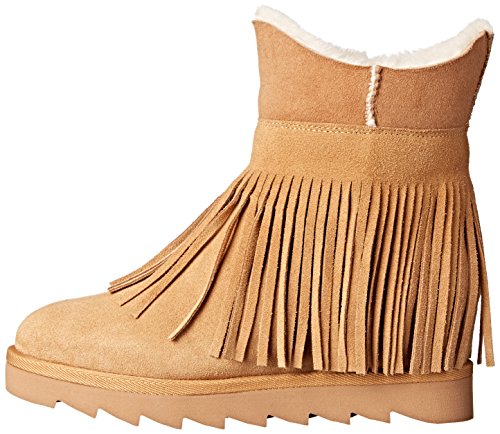 Pull-on construction. Round toe. Fringe detailing. Fleece lining. Textile footbed. Hidden wedge. Rubber sole. Imported.