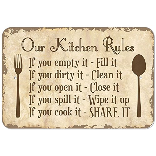 Our Kitchen Rules 9" x 6" Metal Sign