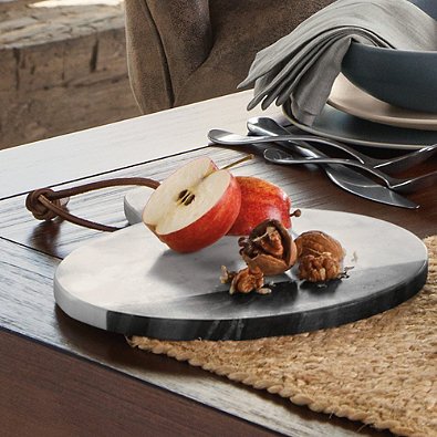 Studio : Artisanal Publisher : Artisanal Product Description Showcase the natural beauty of stone at your table with the Artisanal Kitchen Supply Marble Cheese Board. Elegantly crafted of marble, this round cheese board features unique color variations and can be chilled before serving fruits, cheeses, and more. 0