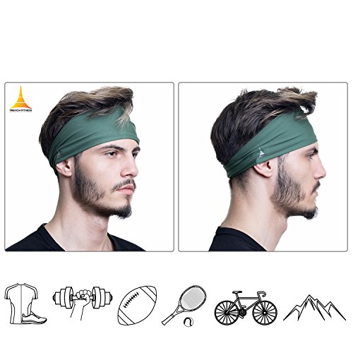 Mens Headband / Sweatband Best for Sports, Running, Workout, Yoga + Elastic Hair Band - Ultimate Athletic Performance