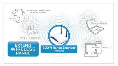 The HWREN1 effectively doubles the operating distance of your entire wireless network. Whether its an area in your home that has limited or no wireless coverage or a warehouse in your office, the Hawking Wireless-300N Range Extender takes the signal from your wireless access point and retransmits it at a higher rate. Simply place the Range Extender halfway between your Wireless Access Point and wireless trouble spot.