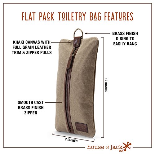 HOJ Co. Ranger Flat Pack Toiletry Bag-Hanging Canvas & Leather Dopp Kit-Tech & Travel Organizer Bag
