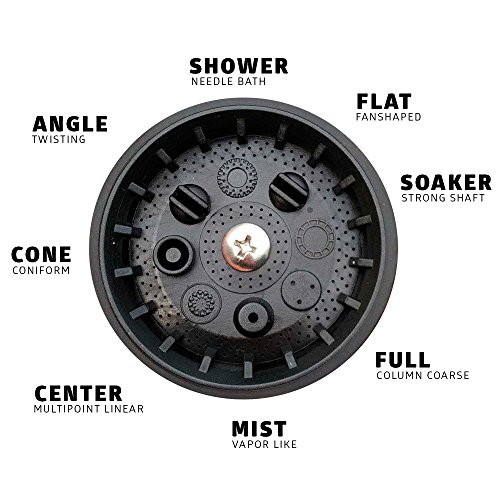 -. Brand : Attican -. EAN : 0714439020590 -. Feature : Heavy duty hose nozzle made from premium materials / Can stand high water pressure without leakage / Non-slip handle provides nice grip / With water control system for easy spraying and cleaning experience / 100% Satisfaction Guarantee or your money back! -. Label : Attican -. Manufacturer : Attican -. ProductGroup : Lawn & Patio -. ProductTypeName : OUTDOOR_LIVING -. Publisher : Attican -. Studio : Attican -. Title : Black Iron Garden Hose Nozzle, 8 Pattern Adjustable -. UPC : 714439020590