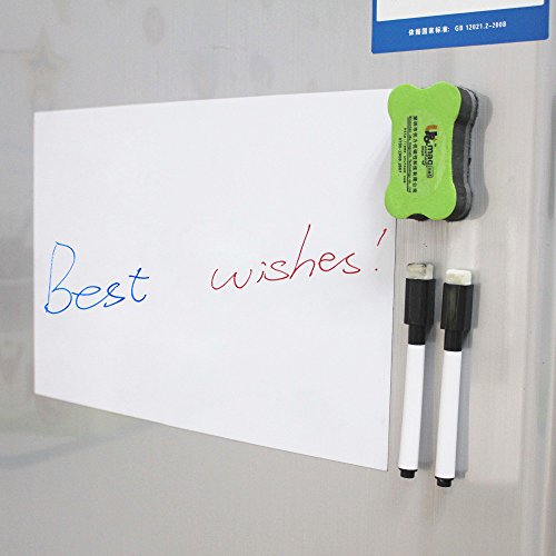 -. Feature : ADVANCED STAIN RESISTANT TECHNOLOGY -The whiteboard is made of PET film and processed with special surface treatment technic so that it is dry erased and can be wipe up cleanly after 30 days. And the rubber material is high quality and compliance with environmental standards, and safe for daily life. / LOW ODOUR MAGNETIC MARKER-The marker comes with a small eraser and a small magnet on the cap that you can erase the wrong writing directly and attract on the refrigerator or whiteboard, then you will not lose it / DURABLE MAGNETIIC ERASER-The front is made of corduroy, which work well and no harm to the board, the backing rubber magnet for attraction on the fridge and whiteboard. In addition, uitable size is good for cleaning and bring you beautiful view feeling. / WIDELY USED-You can make it as message board, graffiti board, to-do list, reminder of shopping list and so on. Just leave warm messages to families, or make a kindly reminder to colleagues at the office. / PERFECT GIFT-As it really useful and convenient that can be use many place, so it will be wonderful gift for parents, children, teachers, Kids and can be sent in memorable day, such birthday, anniversary, Christmas etc.