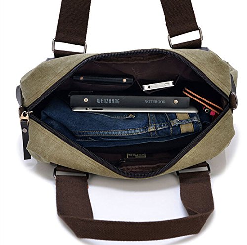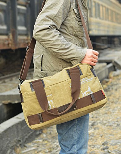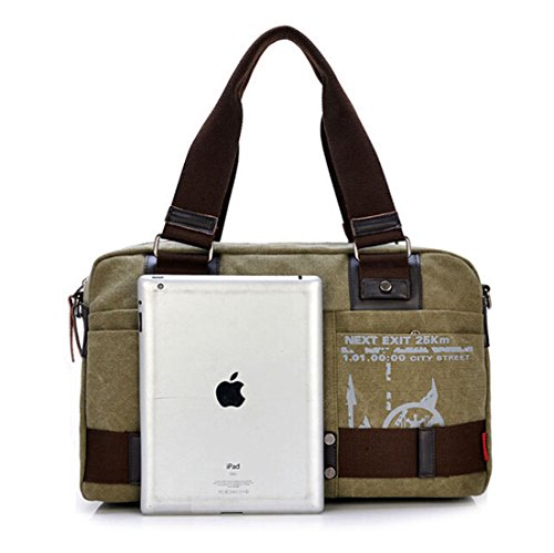 -. Feature : Main Material: Canvas & Faux Leather / Multi-pockets for arranging your daily essentials / Perfect for holding your ipad, books, cellphone, pens, wallet, umbrella, water bottle and so on / Function: Messenger/ Crossbody/ Single Shoulder Bag / Size: 17.7(L)X 6.3(W)X 10.2(H) Inch