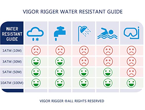 Brand, Seller, or Collection Name:Vigor Rigger Model number:2018 Part Number:VR001-4 Model Year:2018 Item Shape:Round Dial window material type:Mineral Display Type:Analog Case diameter:40 millimeters Case Thickness:5 millimeters Band Material:Calfskin Band width:20 millimeters Band Color:Black Dial color:Grey Calendar:Date Special features:Shock resistant Item weight:1.44 Ounces Movement:Analog quartz Water resistant depth:98.40 Feet