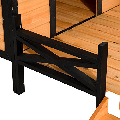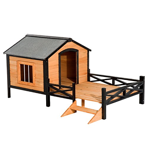-. Title : Pawhut 67” Large Wooden Cabin Style Elevated Outdoor Dog House with Porch
