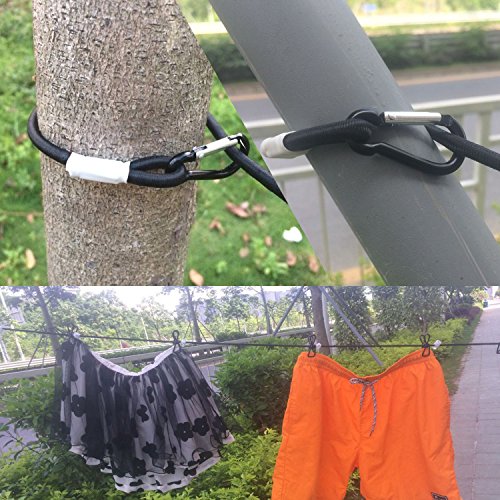 - The hooks on the end of the clothesline are easily attached to different items; such as in a hotel bathroom, a laundry room, on a balcony, door handles, and trees. You don't have to worry about how to dry your wet clothes when ever you're in the Great Outdoors just put up the clothesline and let the breeze dry your clothes