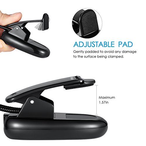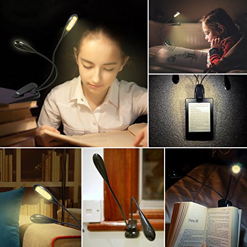 AMIR Double Arms Clip On LED Reading Light with 8 LED extra-bright lamps in 2 adjustable and flexible arms can give out soft light. Lightweight and portable design with flexible arm & padded clip can be used for books, e-readers, camping, music stand, etc. Bright enough to illuminate clearly without heavy glare. It is really a good item that deserves to own!