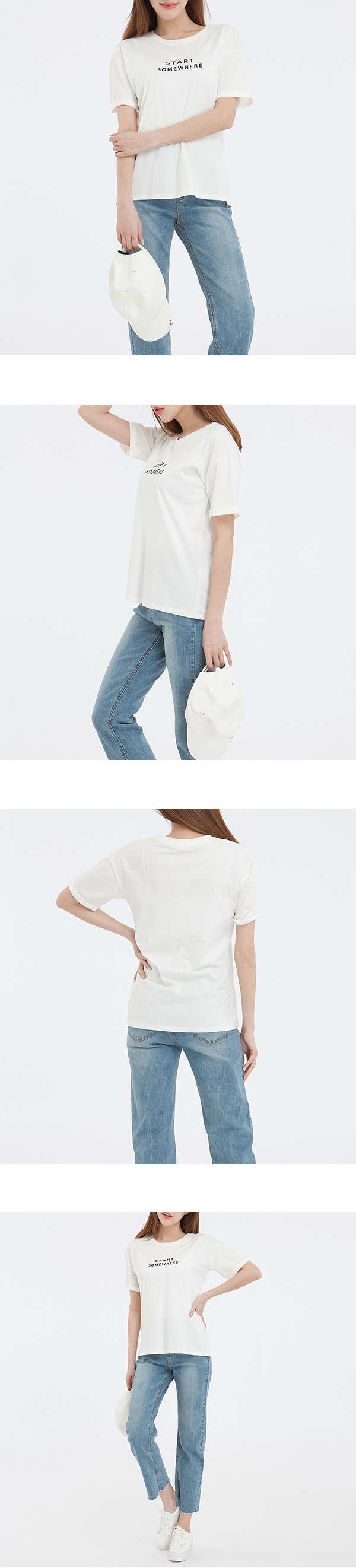 - 롤업으로 포인트를 준 레터링 반팔 티셔츠입니다.