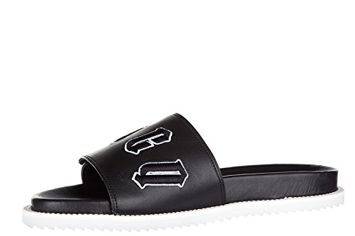 Product DescriptionMCQ Alexander McQueen men's genuine leather slippers sandals mcq embroidery black men's leather slippers new0