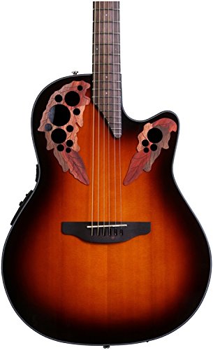 The Celebrity Elite series is your first step into the world of Ovation’s classic multi-soundhole instrument design, with first-rate sound, design, features and value.The Celebrity Elite CE44-1 guitar has the classic mid-depth Lyrachord cutaway body with a solid spruce top featuring the Elite multisoundhole design, which provides clear highs and focused, balanced bass response. For the top’s quartersawn scalloped “X” bracing, we reviewed earlier Ovation bracing patterns extensively and arrived at a remarkable new design that borrows from the past and is voiced for the present, with natural tone and optimal response and power. Together, body, top and sound holes create the classic Ovation Elite sound, resonating with full projection, remarkable note clarity and balance, and nuanced tonal complexity. The top also has elegant multi-wood epaulets, black binding and a beautiful Two-color Sunburst gloss finish.