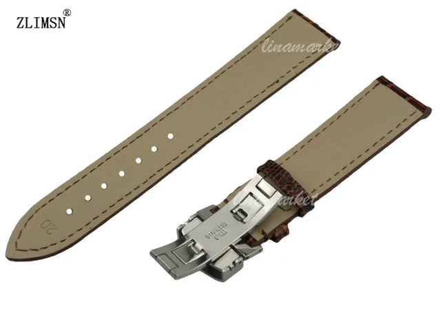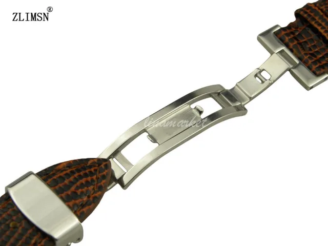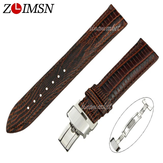 ZLIMSN 브라운 도마뱀 곡물 100% 정품 가죽 시계 스트랩 교체 나비 배포 걸쇠 남성 여성 18 20 22 24 미리메터