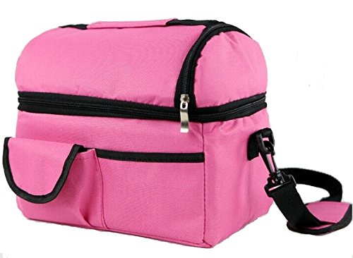 Mengsha's Insulated Lunch Cooler Picnic Bag with Shoulder Strap, Hot Pink