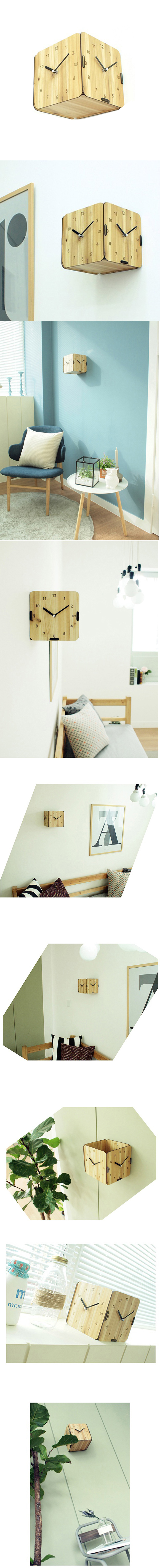 UNMINUTO The Nature 3 side Cube Wood Clock Design Wall Art Clock