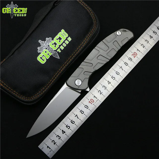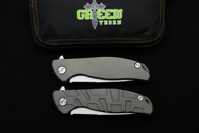 | [해외] 녹색 가시 플리퍼 95 M390 스틸 Nudist/T 모드 티타늄 핸들 야외 캠핑 사냥 포켓 과일 접는 나이프 EDC 도구 |