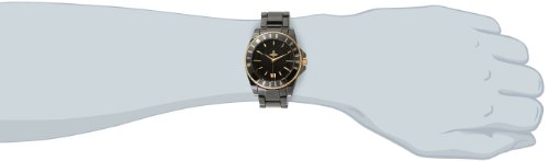 Black ceramic watch featuring logoed coin-edge bezel and gold-tone stick markers