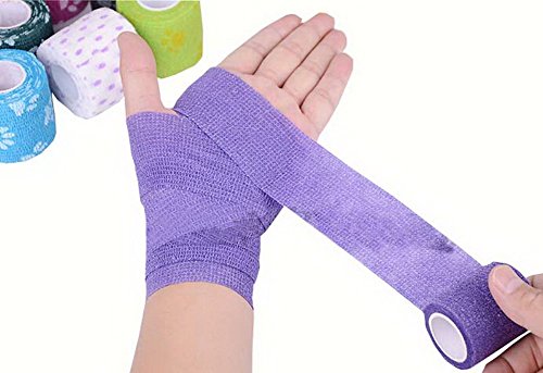 -. Feature : A set of 2 rolls. Size: 450(L)*5(W)CM, 177*2''. / A must have item in your firsr aid kid. / Perfect for home,office,shool,or outdoors. / Cohesive bandage self-adheres and allows for a controlled compression on wounds. / Porous material composition, allowing skin to breath and providing more comfort to users.