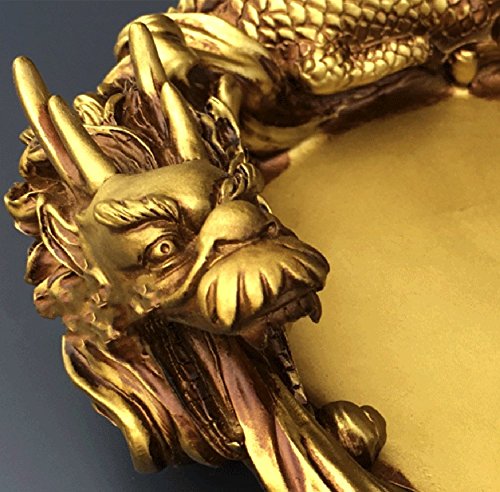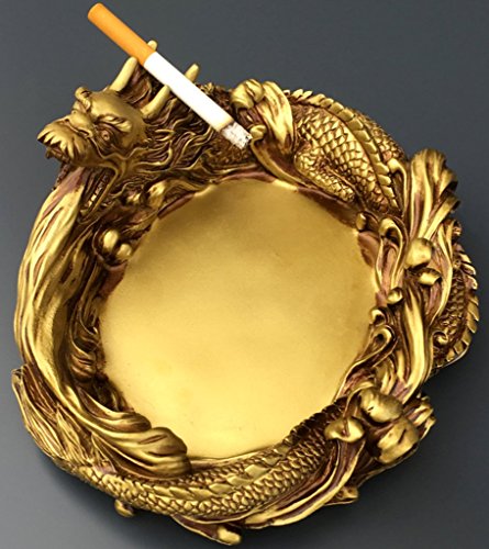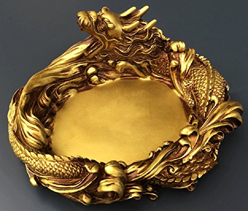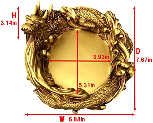 -. Feature : The Dragon is said to create the precious cosmic Chi or known as the 'Sheng Chi' which brings good fortunes into our homes and workplaces, making it an all-rounder bringer of good luck. / Golden Dragon Ashtray is a great way to add a touch of dragon style to your decor, while also expanding on your collection of great dragon gear, too. / A Dragon like living around the edge of the ashtray! The side is decorated with complicated celtic design, with a fantastic detail and appearance. / As well as Dragon statues in their own right, ensuring that even if you do not smoke, these ashtrays are great items to include in your decor, either as decorations or as trays for holding all manner of other items. / Size: 7.67 X 6.88 X 3.14 inches (※ Please look at the seventh images.) / Material: Resin / Check out our vast range of Golden Dragon Ashtray for success, fame & good fortune!