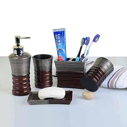 5 Pices Bathroom Accessory Set Resin Soap Dish, Soap Dispenser, Toothbrush Holder & Tumbler