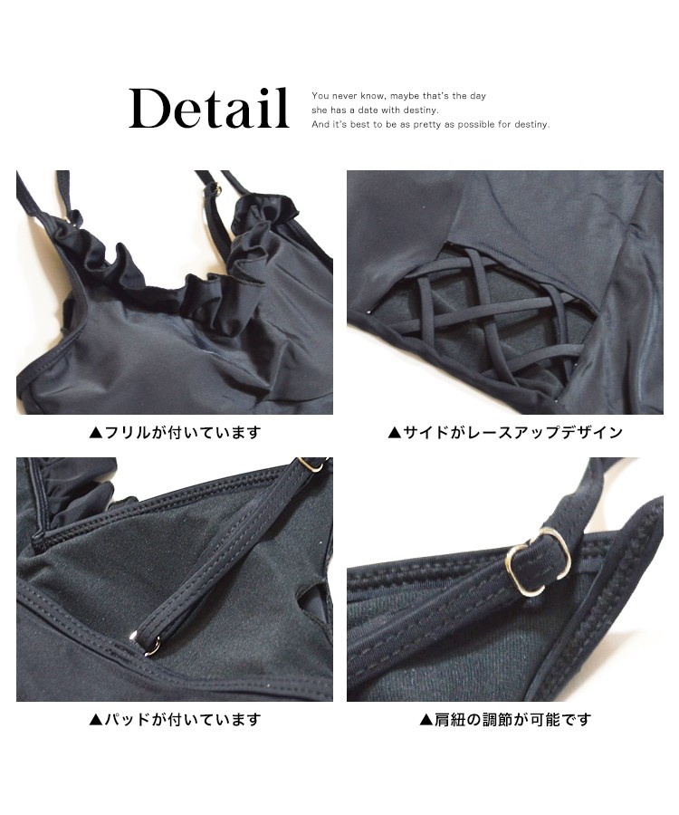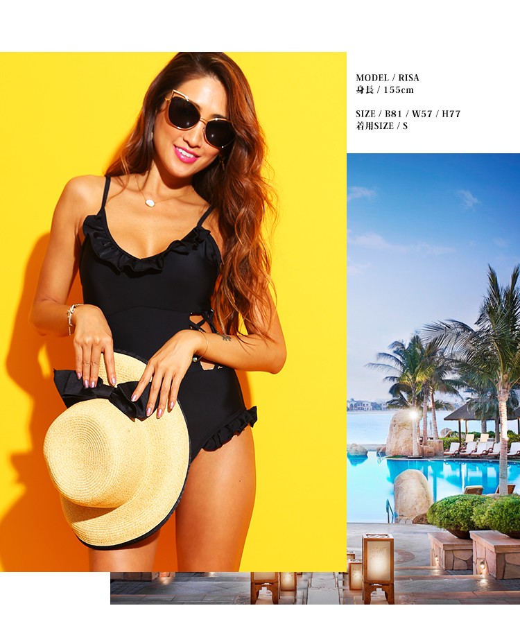 | 商品特徴 | LAVIA(ラヴィア)から新作のプチプラ水着が入荷しました。体型カバーをしつつスタイルアップが期待できるワンピーススタイルのビキニが入荷です!ウエスト部分のクロスの編上げレースアが魅力的なボディラインを演出してくれます。フリルが施されているのでほどよく甘く、取り入れやすいモノトーンカラーです。着脱しやすいのもワンピースタイプの嬉しいところです。 |