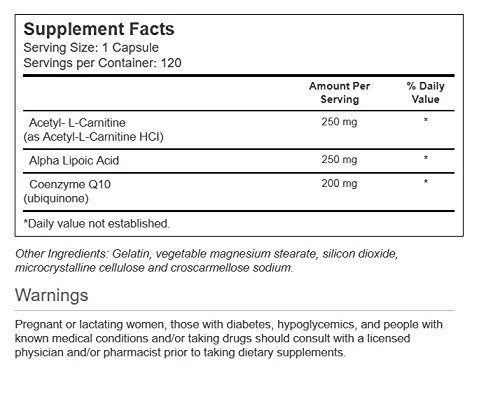 What is Vitacost CoQ10 + Alpha Lipoic Acid + Acetyl L-Carnitine HCl?Vitacost CoQ10 + Alpha Lipoic Acid + Acetyl L-Carnitine HCl is combination formula featuring three antioxidant nutrients that have been shown to promote cardiovascular and cognitive health.*Coenzyme Q10 (CoQ10). CoQ10 is a fat-soluble, vitamin-like compound found in every human cell. Its used by the mitochondria (power plants) of cells to produce energy. CoQ10 is found in highest concentration in cells of organs that require large amounts of energy, such as the heart. It also functions as an antioxidant. While the body produces CoQ10 on its own, levels decline over time, with a steady decrease beginning after age 30. Factors such as aging, genetics, and cholesterol-lowering statins can lead to a CoQ10 deficiency.Alpha lipoic acid (ALA). ALA is a natural compound that functions as a co-factor in vital, energy-producing reactions.* The body produces very little ALA on its own, and it is difficult to obtain sufficient quantities from diet. ALA is well known as a powerful antioxidant.* It has been called a universal antioxidant because it is effective in water-based substances such as blood, while its reduced metabolite, dihydrolipoic acid (DHLA), is effective in fatty tissues and membranes.*Acetyl L-Carnitine (ALC). ALC is the acetyl ester of carnitine, an amino acid derivative, and is distributed throughout the central and peripheral nervous system. Both ALA and ALC are known as mitochondrial antioxidants that can provide anti-aging nutrition.* How does Vitacost CoQ10 + Alpha Lipoic Acid + Acetyl L-Carnitine HCl support health?All three nutrients help provide antioxidant protection against free radical damage.*All three nutrients have been shown to promote cardiovascular and cognitive health.*All three nutrients have been shown to be effective in maintaining blood pressure levels already within the normal range.*ALA enhances the antioxidant activity of vitamins C ...Feature