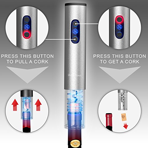 -A brilliant gift idea for wine lovers. There are so many occasions to show people your attention and care. Birthday, wedding, anniversary, graduation, retirement and so on. We are sure you have some wine drinker or enthusiast who is very special to you. Are you looking for fun wine gifts for women? Why don't you present your friend, colleague or business partner something new? UncleViner comes in a premium box and perfectly suits for a gift. -Battery and charger included. We provide not only 4AA batteries, but also charging socket and charger (rechargeable). -7 Components in the set. -7 SECONDS. Even the strongest bottles will be opened effortlessly with this top kitchen tool. You will open the bottle with just one gentle touch of a button. -Sophisticated design. Our set has elegant and practical design providing comfort and easy grip. UncleViner design fits into any kitchen interior. UNCLEVINER Automatic Wine Opener combines only the best design, convenience, lovely box and becomes very helpful kitchen gadget. You have more time to relax and have fun with UNCLEVINER. UNCLEVINER is must have company for your holiday or party. We know our customers buy UncleViner for mother, father, husband, wife, grandparents, sister, brother, daughter, son and coworkers from office. That's why we can tell it's cool battery operated wine accessory both for men and women. Be sure, adults will be happy to use this new kitchen gadget at home. Uncle Viner is wonderful solution if you want to make present to anyone who loves wine - your girlfriend, wife, sister-in-law, boat owner, lawyer, neighbors, couple you met during your vacation. 0 |