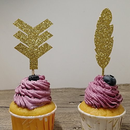 Set of 24 Arrow Feather Cupcake Toppers Tribal - Boho - Party Decors - by Giuffi