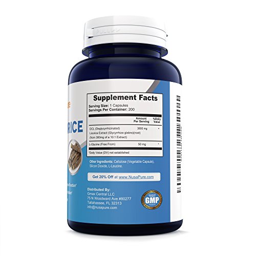 The word “licorice” refers to the root of a plant called?Glycyrrhiza glabra.?It’s native to Europe and Asia. The plant is actually classified as a weed in those areas. The early Egyptians loved licorice root. They used it in tea as a cure-all concoction. Licorice was later imported to China where it became an important herb in Chinese medicinal tradition. DGL is licorice with glycyrrhizin removed, which is a safer form. DGL should contain no more than 2 percent glycyrrhizin. This form is recommended for gastrointestinal symptoms as long-term intake may be needed. NusaPure DGL Licorice 3800mg Benefits: DGL Licorice is used to relieve discomfort from chronic indigestion, heartburn, stomach ulcers, and canker sores.* Whole?licorice?extract is beneficial for menstrual and menopausal disorders, as well as inflammatory disorders. Why should YOU choose NusaPure?