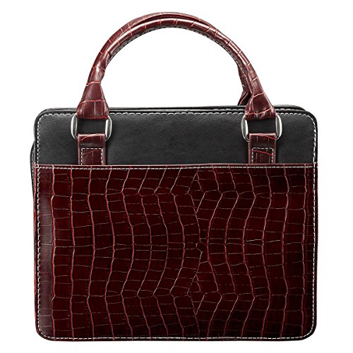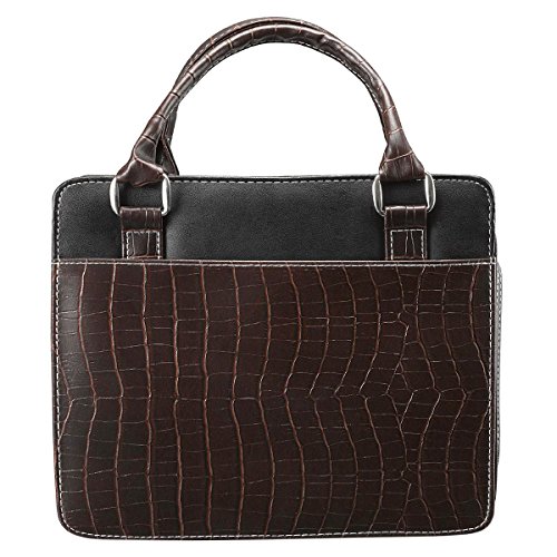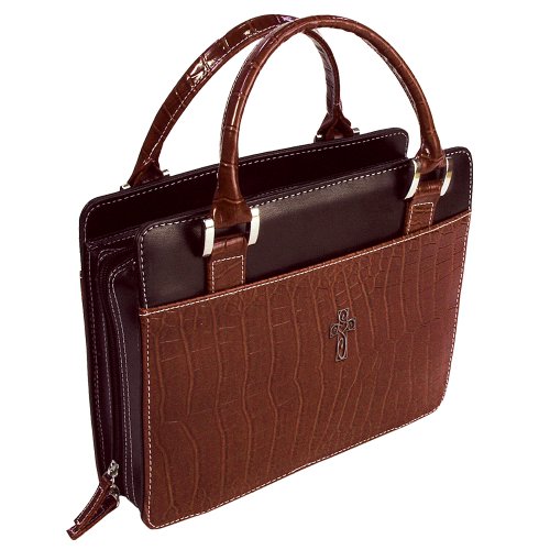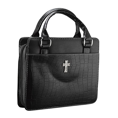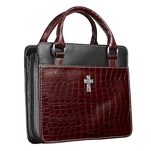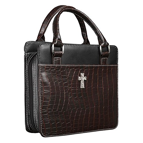 Studio : Christian Art Gifts Publisher : Christian Art Gifts Binding : Office Product Product Description Tote your Bible in this fashionable Croc-Embossed Purse-Style Bible / Book Cover with decorative silver cross. No need to carry a separate purse to Bible study with this attractive bag. Its purse style handles, front and back exterior slip pockets and its 2-way zipper offer a convenient transition. Inside, you'll find a pen loop, 3 ID / photo holders and a small zipped mesh pocket for currency or keys. The Large size comfortably holds all popular Bibles such as The New Spirit-Filled Bible, The Life Application Study Bibles and the NIV Study Bible, as well as many other books and Bibles up to 9.50 x 6.75 x 2.25 inches. The Medium size accommodates Bibles such as The Holy Bible, NLT Reference Editions, Daily Study Bible for Women and The Life Application Bible - Personal size, or other books and Bibles up to 8.875 x 6.50 x 1.75 inches. Choose Color and Size 0