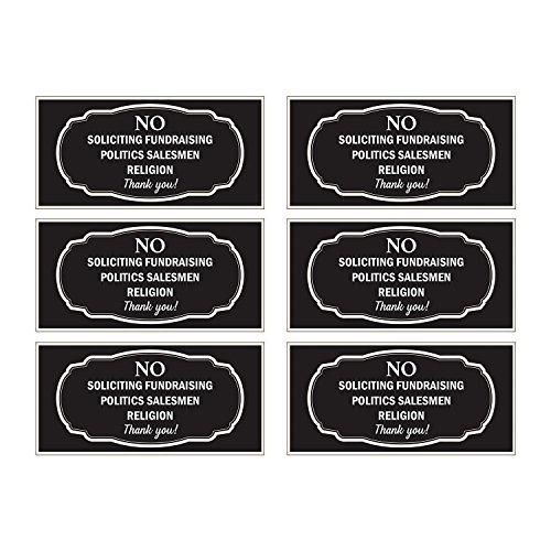 - SET OF SIX | Salespeople and petitioners may approach your home from multiple locations, so we included enough decals for your front door, garage door, patio/deck, and bedroom window.