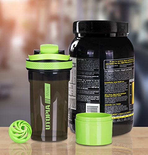 Includes 24 ounce capacity, a detachable protein box and a plastic whisk